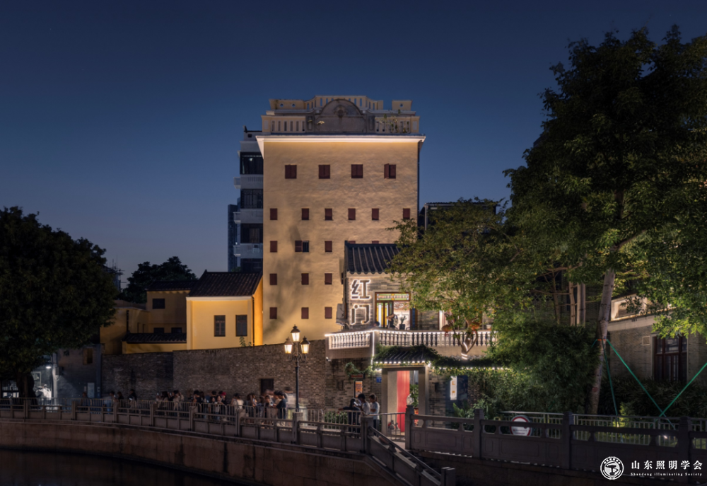 对于宝庆大押等重点历史保护建筑,设计团队创新性地利用周边建筑及植栽,选用特殊配型的灯具,将立面整体泛亮,顶冠细节局部打亮,完美呈现历史建筑的夜间风貌。