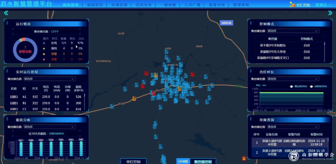 该平台基于光汇智慧管理平台搭建,是其又一次成功的应用落地。作为光汇科技在智慧城市领域的创新实践,此前光汇智慧管理平台已在多个场景中得到应用,均取得良好成效。此次在泗水县的应用,通过整合先进的物联网、大数据、人工智能等前沿技术,实现对照明设施的全方位智能管控。