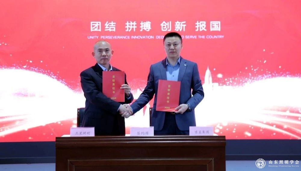 集团总裁段学利代表集团,与三星照明代表执行总经理焦玉伟,郑重签署2026年目标责任书。三星照明全体成员将以目标为导向,以责任为动力,确保2026年各项工作落地见效,超额完成年度目标。
