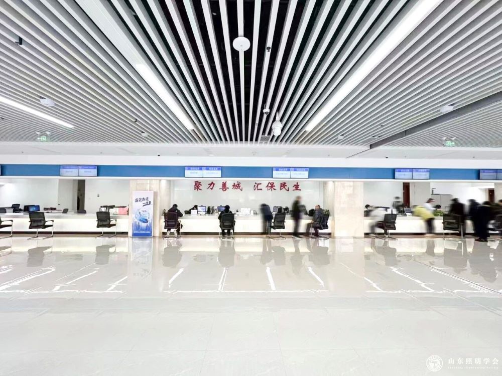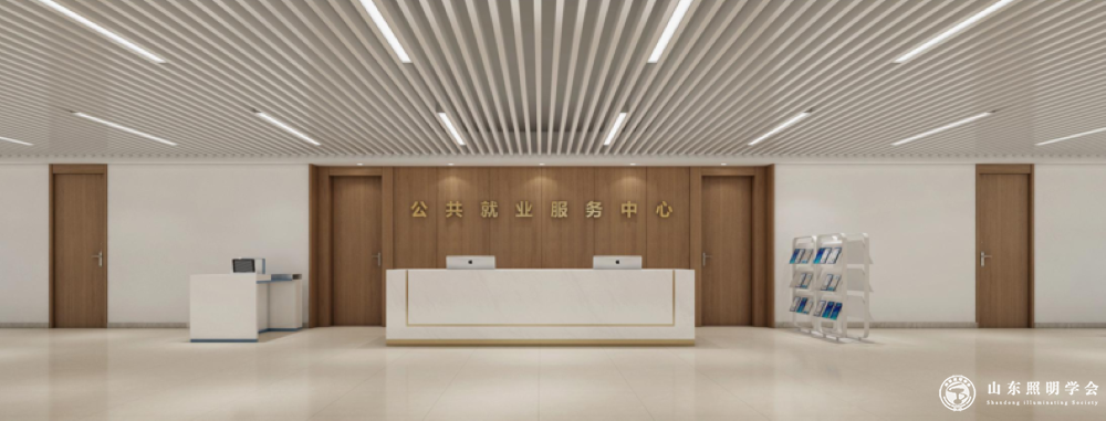 一层开放式服务台实现 “零距离” 沟通,麦穗元素延伸搭配柔和照明与绿植点缀,营造柔和氛围,让社保办理、信息查询等业务在舒适氛围中高效完成。