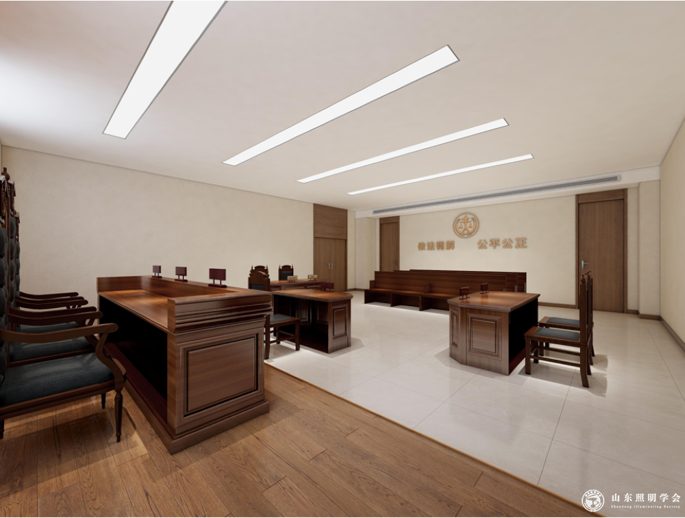 ▪ 高标准仲裁庭:以 “庄重公正” 为核心,深色木质家具搭配中性色调,墙面采用吸音材质,保障庭审过程的严肃性与私密性,彰显法律权威。