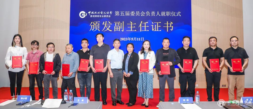 5月11日上午,中国轻工业联合会副会长、中国照明电器协会理事长何烨,中国照明电器协会秘书长王卓出席“2023中国景观照明产业大会”开幕式。现场还举办了中国照协景观照明专业委员会第五届委员会负责人就职仪式。何烨理事长、王卓秘书长为新一届专委会领导班子授证。