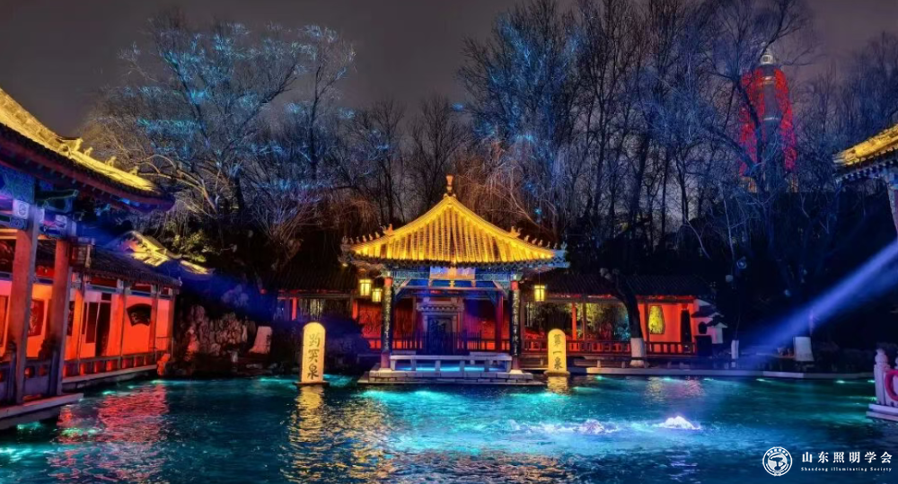 趵突泉景区的夜间亮化,向来是泉城年味照明的点睛之笔。正式灯会启幕时,全域景观灯、氛围灯、互动灯组同步开启,人流与灯火交织,主光源与辅助光影层层叠加,将节日氛围烘托至顶点。而花灯安装调试阶段的趵突泉,更能窥见照明设计的匠心:低眩光的庭院灯、藏于廊下的洗墙灯、勾勒亭台轮廓的线条灯、点缀水面的水下灯有序配合,以静谧光影还原园林本底之美。流光溢彩不张扬,明暗对比有分寸,亭台楼阁、小桥流水在精准控光的亮化效果下,宛若水墨仙境,让夜游者在舒适的光环境中,感受泉城独有的静谧与诗意。