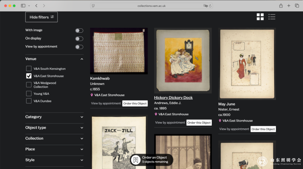 (图片:V&A东区储藏馆“点阅藏品”服务页面丨来源:网络公开)