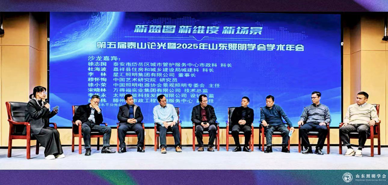 2025年12月13日,在“第五届泰山论光暨山东照明学会学术年会”期间,以“新蓝图 新维度 新场景”为主题的专题沙龙成功举行。本次沙龙旨在推动主论坛宏观议题向实践层面深度转化,特别邀请了来自城市规划管理、工程建设、文化艺术、设计研究及领军企业的八位嘉宾,围绕城市照明的落地实践、运维管理、产业应对及艺术融合等关键议题,展开了一场务实而富有前瞻性的对话。沙龙由山东照明学会副秘书长李曼曼主持。