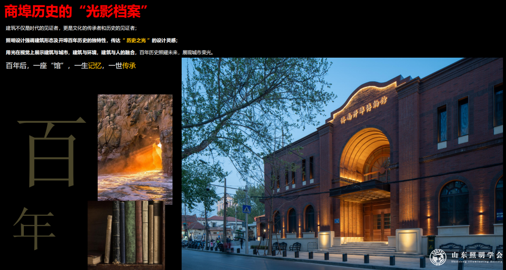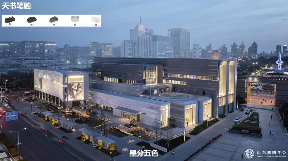 他结合三大济南标杆项目拆解落地路径:济南韩美林艺术馆,萃取天书笔触与泉城水韵,打造“泉影墨画”光影效果,实现传统建筑与艺术、城市特质共生;百年上新街以暖光激活商业属性,聚焦文化节点打造可漫步体验的夜间场景,唤醒老济南记忆;老商埠开埠博物馆以“光影档案”为核,用低眩光高显色灯光还原建筑肌理,让老建筑成为历史传承与文化传播的载体。