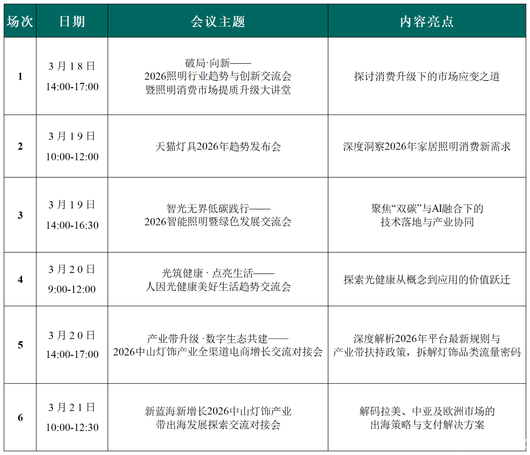 如由中国照明电器协会主办的“破局·向新——2026照明行业趋势与创新交流会暨照明消费市场提质升级大讲堂”,将于3月18日14:00 - 17:00在主会场会议中心一楼举办。